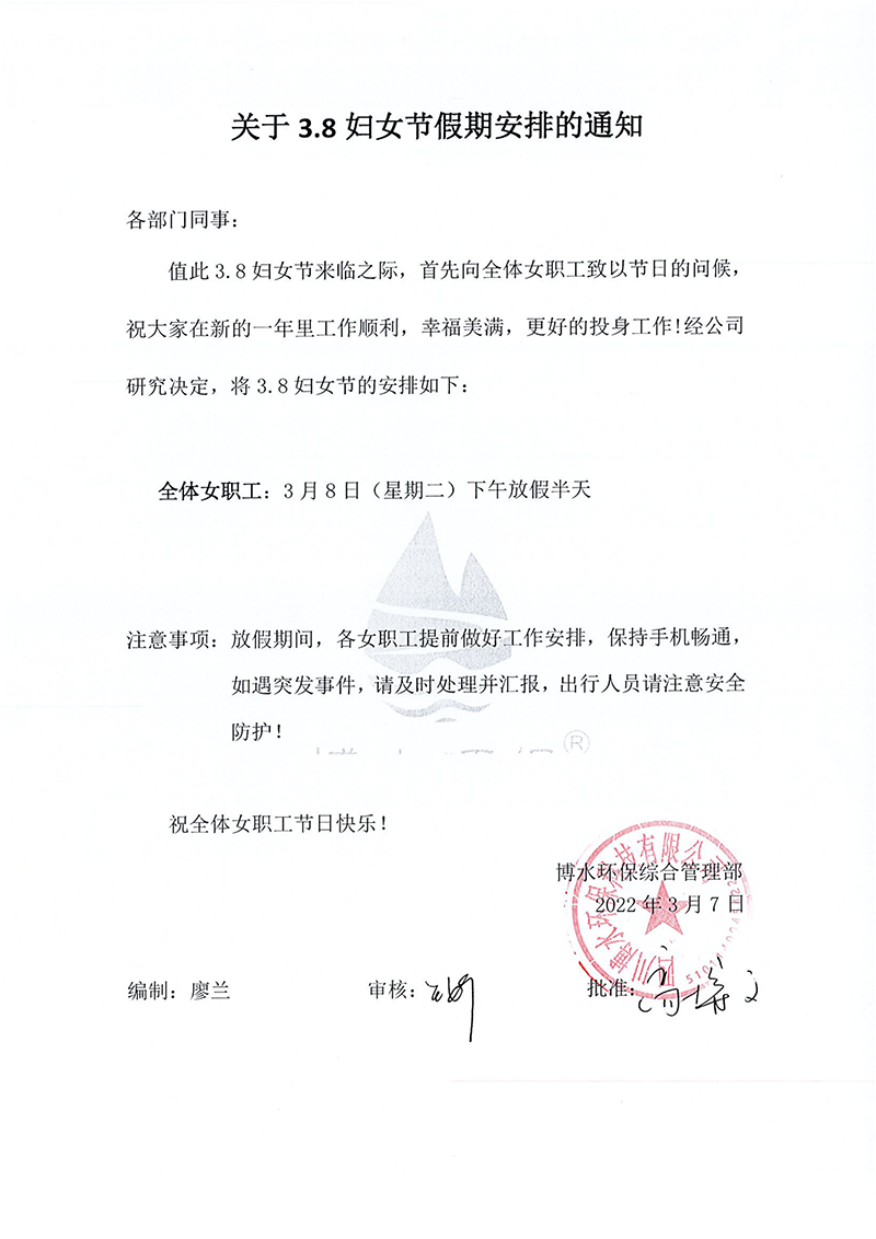 四川博水環(huán)保科技有限公司 祝所有“女神”芳華自在,笑靨如花,心中擷滿愛,愿你我和光同行,和光同舞,和光同塵,38女神節(jié)快樂!