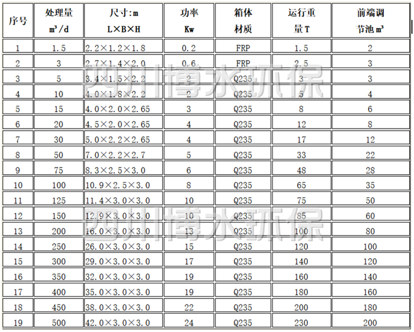 2 MBR工藝設(shè)備選型表1.5-500m³/d