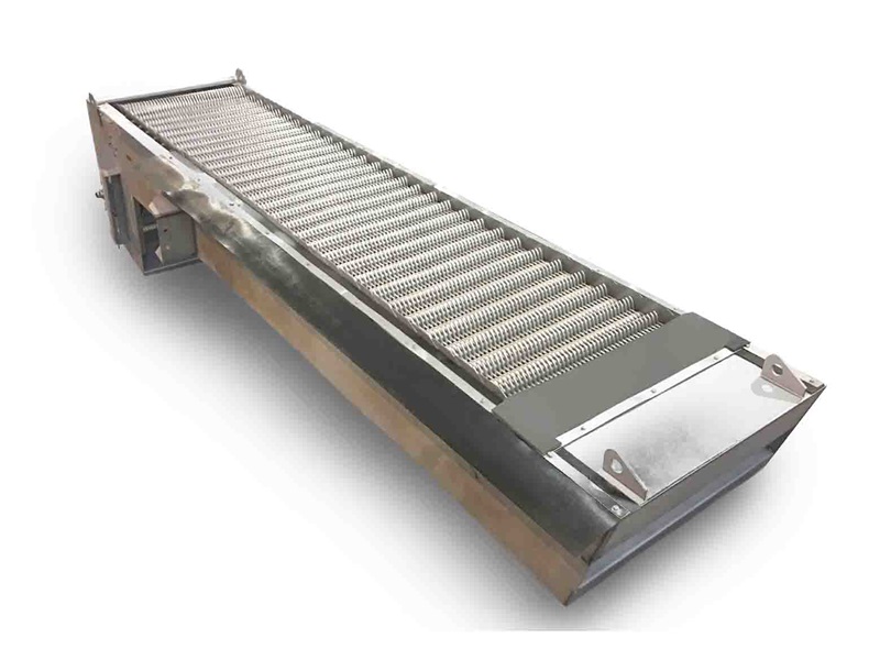按水流方向耙齒鏈類同于格柵,在耙齒鏈軸上裝配的耙齒間隙可以根據使用條件進行選擇。當耙齒把流體中的固態(tài)懸浮物分離后可以保證水流暢通流過。整個工作過程是連續(xù)的,也可以是間歇的;