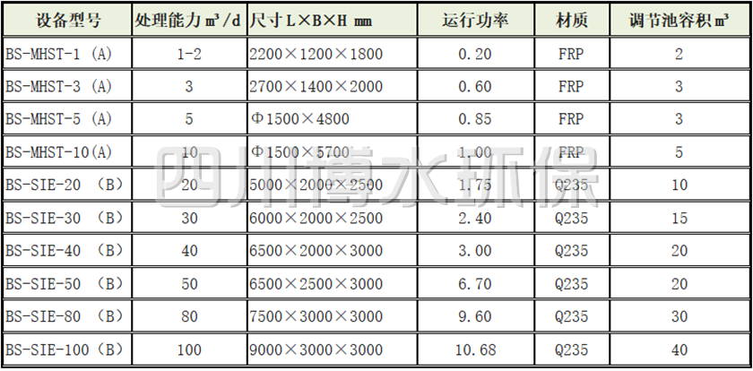 三 分散式農(nóng)村污水處理設(shè)備產(chǎn)品規(guī)格型號表